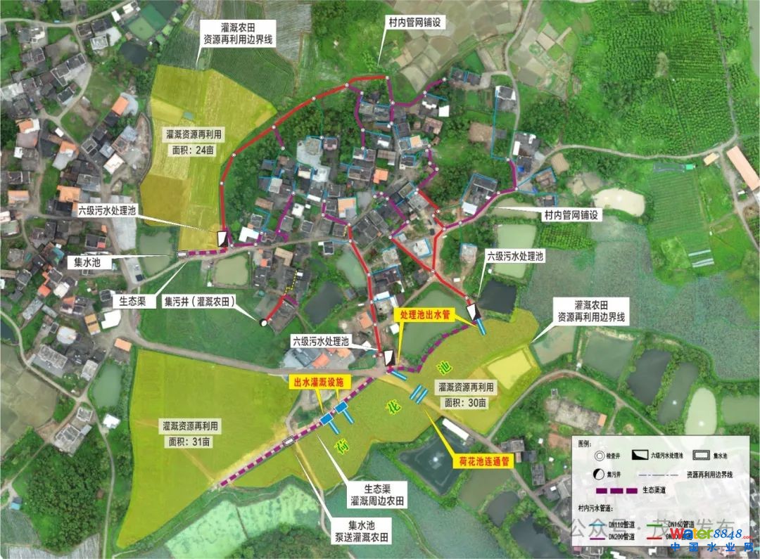 電白區(qū)沙瑯鎮(zhèn)會業(yè)村采用了五級凈化池來收集和處理污水,經(jīng)過濾沉淀和厭氧發(fā)酵后達到了農(nóng)田灌溉用水標準,用于農(nóng)田灌溉;