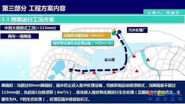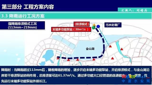 增加30m3/s末端排澇泵站至長(zhǎng)江,分擔(dān)金山湖沿線泵站排澇壓力。