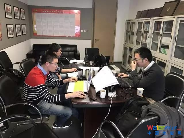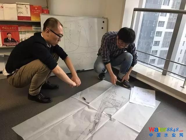華北總院負(fù)責(zé)人王曉康和滿江春設(shè)計(jì)院負(fù)責(zé)人汪明輝席地而坐對(duì)大口徑方案進(jìn)行探討