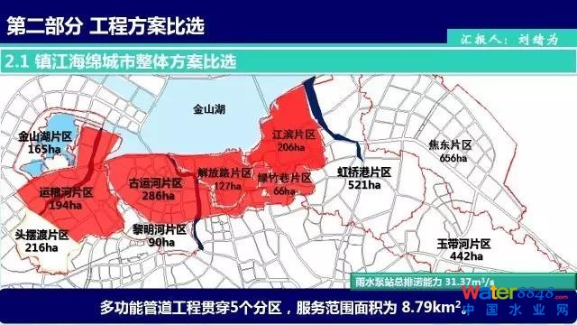 鎮(zhèn)江作為第一批海綿城市試點(diǎn)之一,在過(guò)去的一年里,在老城區(qū)范圍內(nèi)相繼完了60余個(gè)建筑與小區(qū)的LID海綿化改造工程,作為源頭治理,其試點(diǎn)區(qū)系統(tǒng)性海綿工程作出了相當(dāng)大的貢獻(xiàn),但盡管如此,由于試點(diǎn)區(qū)多為老城區(qū),建筑密度高,管網(wǎng)密布、混接錯(cuò)綜復(fù)雜,因此,在源頭改造的同時(shí),對(duì)過(guò)程管網(wǎng)進(jìn)行控制與加強(qiáng),由此,引出“沿金山湖多功能大口徑管道工程”。