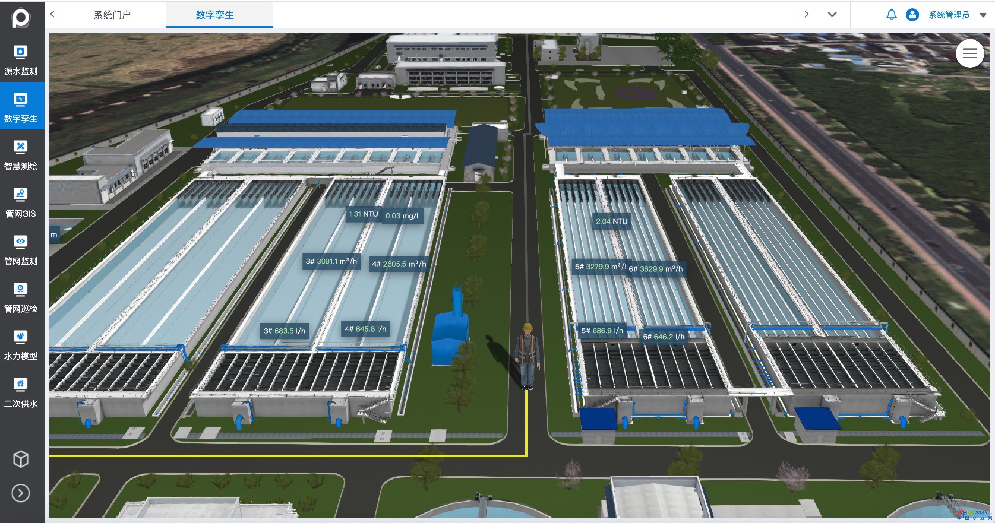 以“數(shù)字化、信息化、智能化、標準化”為發(fā)展方向,通過三維可視化建模、大數(shù)據(jù)、物聯(lián)網(wǎng)等技術與水務企業(yè)業(yè)務(水廠、管網(wǎng)、二供、泵站等)管理深度融合,建設覆蓋全業(yè)務、全流程、全過程的智慧水務數(shù)字孿生體平臺