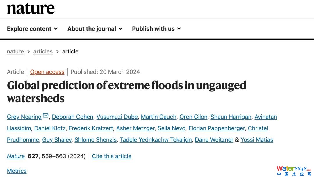 相關(guān)研究論文以“Global prediction of extreme floods in ungauged watersheds”為題,已發(fā)表在權(quán)威科學(xué)期刊 Nature 上。