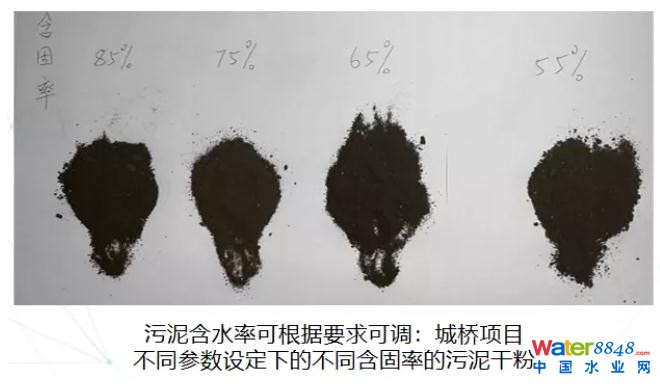 污泥體積可減至濕污泥的1.1-1.7%,傳統(tǒng)脫水污泥的22-34%。減量率高達(dá)到98%!