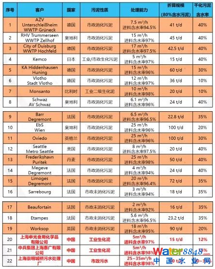 注:上述處理量是以預(yù)濃縮污泥為計(jì)算依據(jù)(污泥濃度93~97%)