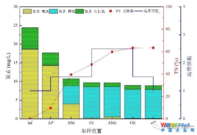 3)深度處理對氨氮沒有降解作用,如果前端生物處理的氨氮降解不完全則會導致出水不達標;此外,硝化不足也會影響反硝化效果,導致TN出水不達標;