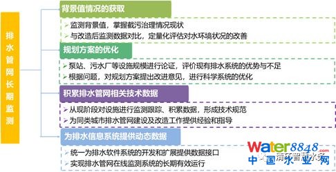 隨著城市的快速發(fā)展,城市排水作為基礎(chǔ)安全保障設(shè)施逐漸受到關(guān)注,“海綿城市建設(shè)”、“黑臭水體整治”以及“排水設(shè)施聯(lián)合調(diào)度”等專(zhuān)題項(xiàng)目逐一開(kāi)展。“排水監(jiān)測(cè)一張網(wǎng)”是項(xiàng)目建設(shè)有效性的保障,管理人員不僅可以隨時(shí)查看監(jiān)測(cè)數(shù)據(jù)和信息,根據(jù)數(shù)據(jù)定量評(píng)價(jià)項(xiàng)目建設(shè)效果,還可以根據(jù)目前的數(shù)據(jù)反饋效果,指導(dǎo)后續(xù)項(xiàng)目的優(yōu)化與調(diào)整。