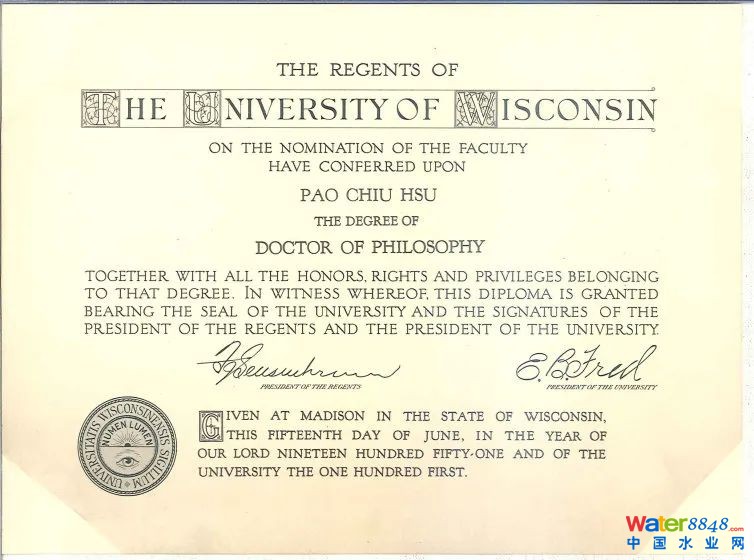 1949年,許保玖從美國(guó)密歇根大學(xué)獲衛(wèi)生工程碩士學(xué)位;1951年又從美國(guó)威斯康辛大學(xué)獲博士學(xué)位。1954年12月,許保玖與夫人沖破重重阻力歸國(guó),成為國(guó)內(nèi)第一名給排水專業(yè)博士。