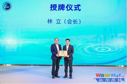 廣東省城鎮(zhèn)供水協(xié)會(huì)會(huì)長(zhǎng)林立為協(xié)會(huì)第九屆秘書長(zhǎng)董玉蓮頒發(fā)聘書