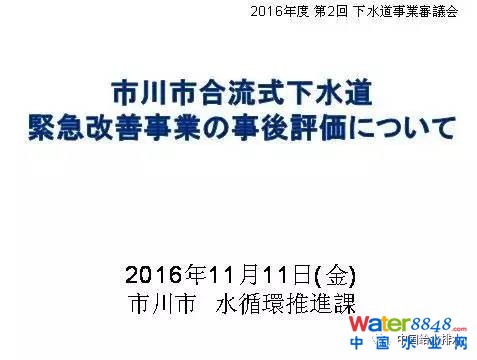 市川市經(jīng)過十年的改造,十年過了以后,后面的三年要對結果進行評估。評估報告展示了多年改善合流制下水道的成果。