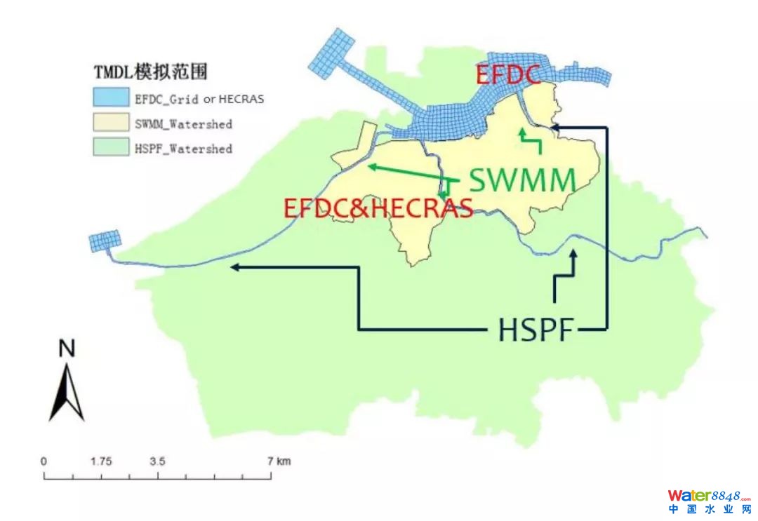 鎮(zhèn)江市水環(huán)境模型應(yīng)用區(qū)域及模型耦合框架如下:
