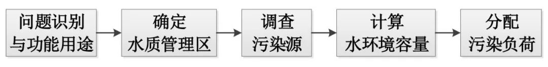 基于“總量控制”的污染物負荷削減及徑流控制的思路,旨在從水環(huán)境保護目標出發(fā),以受納水體對某種污染物的最大允許排放量為依據,確定污染物的最大排放負荷,從而對污染源進行有效管控。TMDL的實施步驟如下: