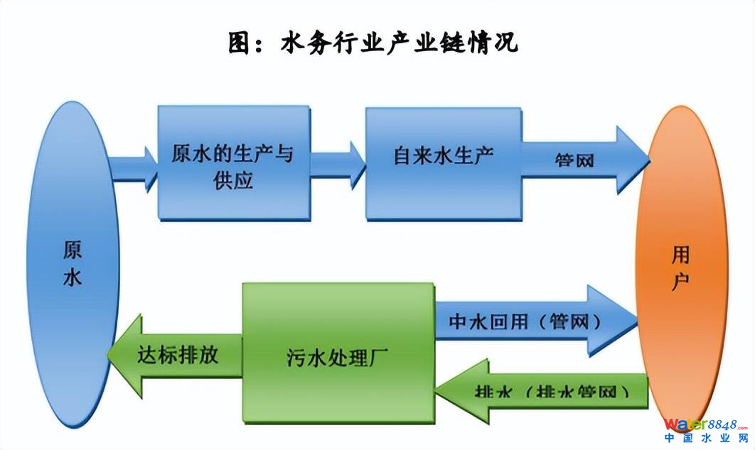 水務(wù)行業(yè)是指由原水、供水、節(jié)水、排水、污水處理及水資源回收利用等形成的產(chǎn)業(yè)鏈?傮w可以分為供水和污水處理兩個子行業(yè)。