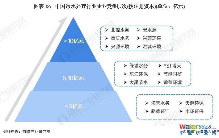 目前,我國污水處理行業(yè)市場參與者眾多,主要參與者有跨國水務集團、大型國有企業(yè)以及民營企業(yè),從企業(yè)規(guī)模來看,污水處理行業(yè)企業(yè)規(guī)模相對較大,企業(yè)注冊資本較高,其中,注冊資本在 10 億元以上的大型企業(yè)有北控水務、碧水源、興蓉環(huán)境、首創(chuàng)環(huán)保等 ; 注冊資本在 5-10 億元之間的企業(yè)有綠城水務、節(jié)能國禎、大禹節(jié)水等 ; 注冊資本小于 5 億元的企業(yè)有天源環(huán)保、中環(huán)環(huán)保等。從企業(yè)競爭力來看,大型國有上市企業(yè)如北控水務、首創(chuàng)股份、興蓉環(huán)境等,憑借雄厚的資本實力、豐富的社會資源等優(yōu)勢,占據(jù)行業(yè)主導地位,在全國范圍內積極開拓搶占市場,是跨國水務企業(yè)強力的競爭對手。