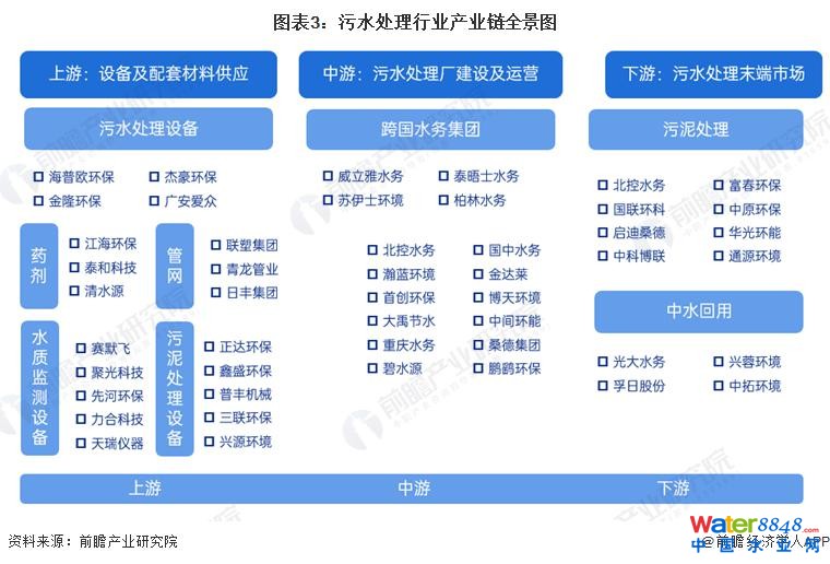 在上游領域,污水處理設備及配套材料供應代表企業(yè)有海普歐環(huán)保、杰豪環(huán)保、清水源、泰和科技、賽默飛、先和環(huán)保、正達環(huán)保等 ; 在中游污水處理設施建設與運營領域,代表企業(yè)有北控水務、首創(chuàng)環(huán)保、重慶水務、碧水源、國中水務、博天環(huán)境、瀚藍環(huán)境、金達萊、大禹節(jié)水等 ; 在下游市場,代表企業(yè)有啟迪桑德、國聯(lián)環(huán)科、中科博聯(lián)、光大水務、興蓉環(huán)境、孚日股份、中拓環(huán)境等。