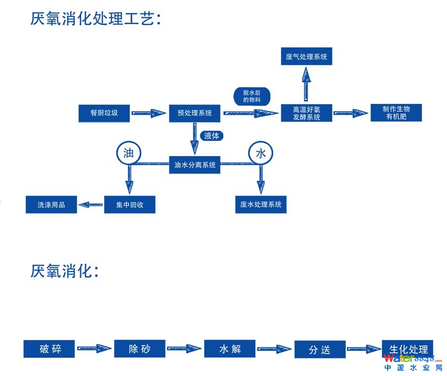 餐廚垃圾通過預處理被分為雜質(zhì)、有機渣料、廢水、廢油脂。預處理具有雜質(zhì)去除率高、油脂提取率高、有機質(zhì)損失率低等特點。根據(jù)實際情況優(yōu)先考慮采用技術(shù)成熟、效率高、運行可靠的設(shè)備,堅持技術(shù)的先進性、工藝的可行性和經(jīng)濟性相結(jié)合的原則。目前國內(nèi)常用的兩種餐廚垃圾處理工藝,即厭氧消化、微生物處理技術(shù)。