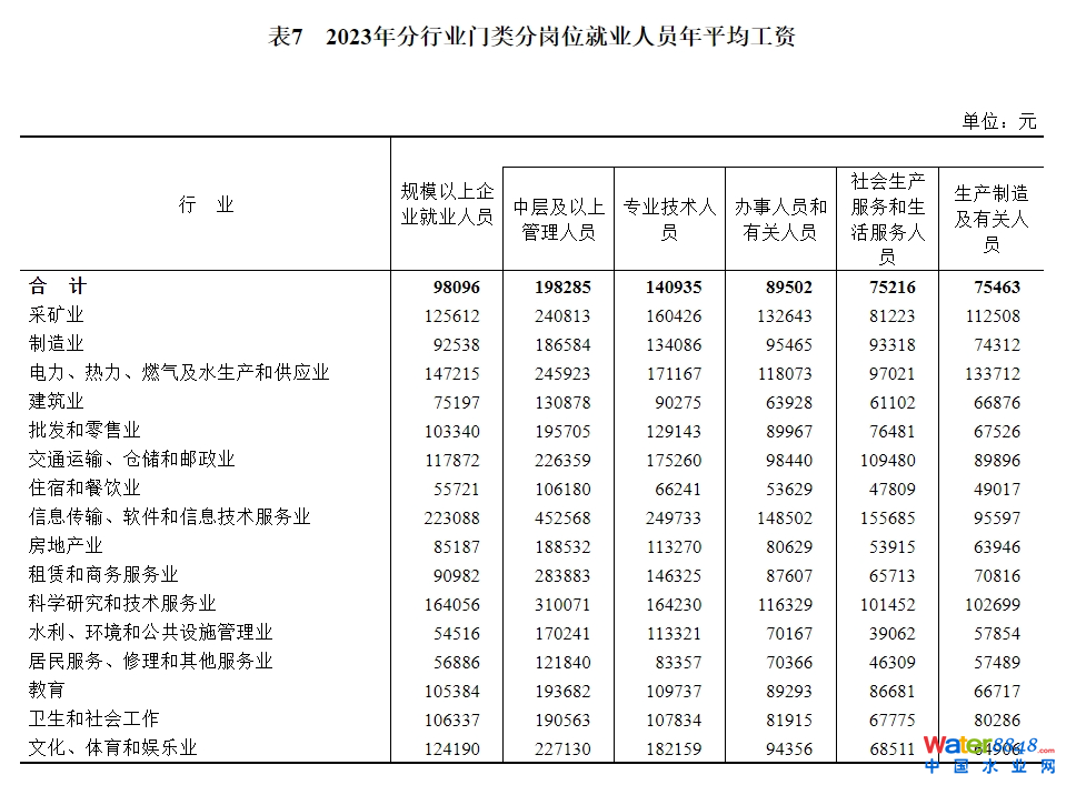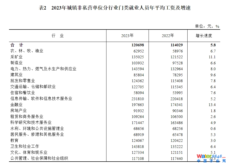 WATER8848前言:國(guó)家統(tǒng)計(jì)局最新披露的2023年平均工資數(shù)據(jù)顯示,電力、熱力、燃?xì)饧八a(chǎn)和供應(yīng)業(yè)的年平均工資達(dá)到了143594元,同比增長(zhǎng)8.0%。這一數(shù)據(jù)不僅揭示了該行業(yè)的薪資水平,也反映了其在國(guó)內(nèi)經(jīng)濟(jì)中的重要地位以及勞動(dòng)力市場(chǎng)的供需狀況。
