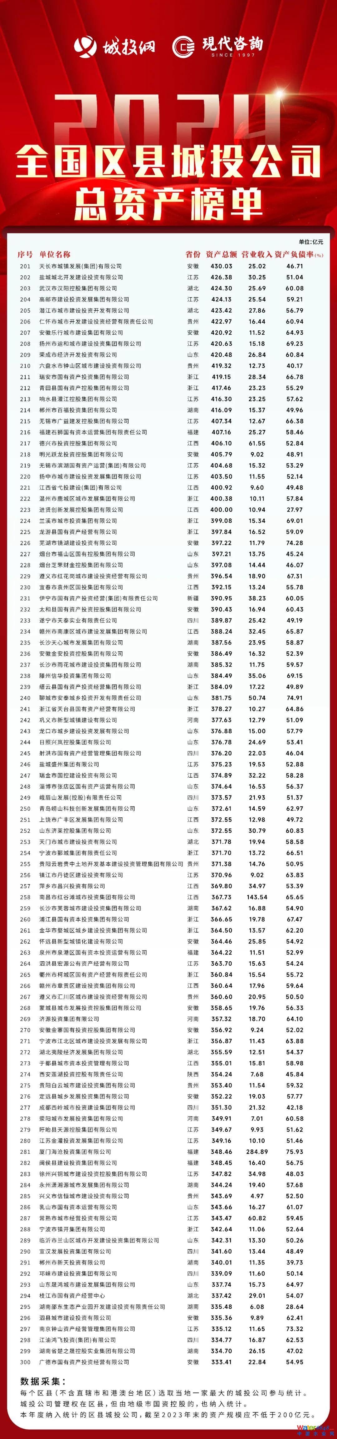 2024全國區(qū)縣城投公司總資產(chǎn)榜單(201-300)