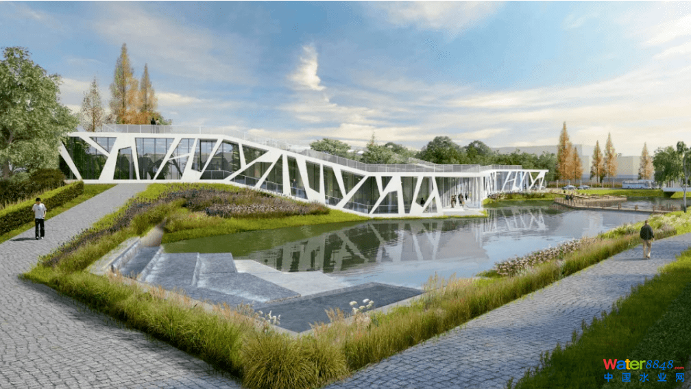 工程貫徹海綿城市的建設(shè)理念,著力營造“水系循環(huán)、環(huán)境和諧”的生態(tài)污水處理廠。通過對廠區(qū)內(nèi)植物、水系的科學(xué)布置,實現(xiàn)廠區(qū)內(nèi)雨水的自然積存、自然滲透、自然凈化;通過與周邊環(huán)境的融合呼應(yīng),實現(xiàn)區(qū)域環(huán)境的整體正向提升。