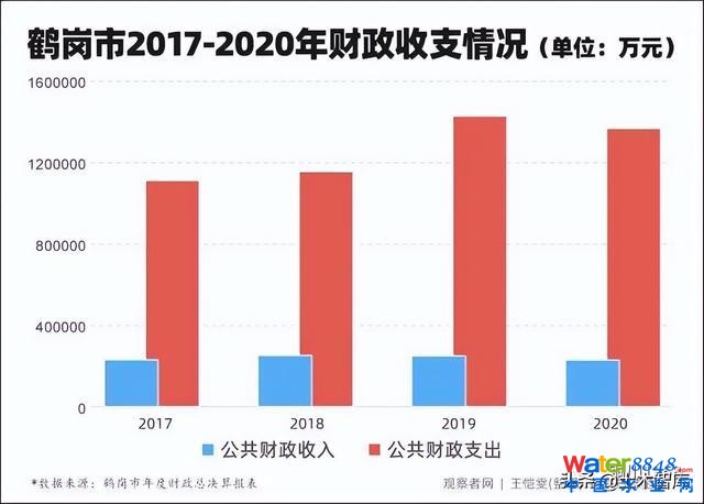2018年、2019年、2020年,鶴崗全市公共財(cái)政收入分別為25.2億元、24.9億元、23億元,而公共財(cái)政支出卻分別達(dá)到115.7億元、143億元和136.8億元。
