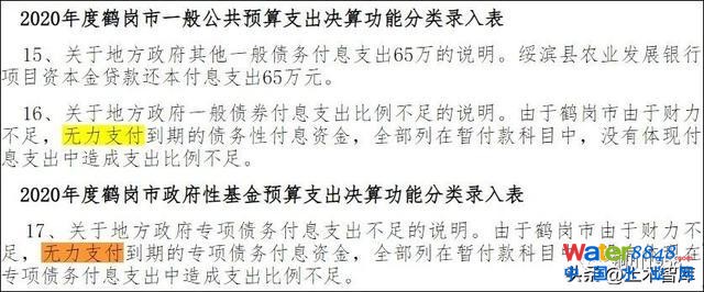 不過,2020年度鶴崗市財(cái)政總決算強(qiáng)審說明提到,鶴崗市由于財(cái)力不足,無力支付到期的債務(wù)性/專項(xiàng)債務(wù)付息資金,全部列在暫付款科目中,沒有體現(xiàn)在付息支出/專項(xiàng)債務(wù)付息支出中造成支出比例不足。