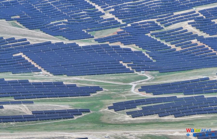6月11日拍攝的位于新疆伊犁哈薩克自治州的中國(guó)綠發(fā)尼勒克400萬(wàn)千瓦風(fēng)電光伏項(xiàng)目(無(wú)人機(jī)照片)。新華社記者 趙戈 攝