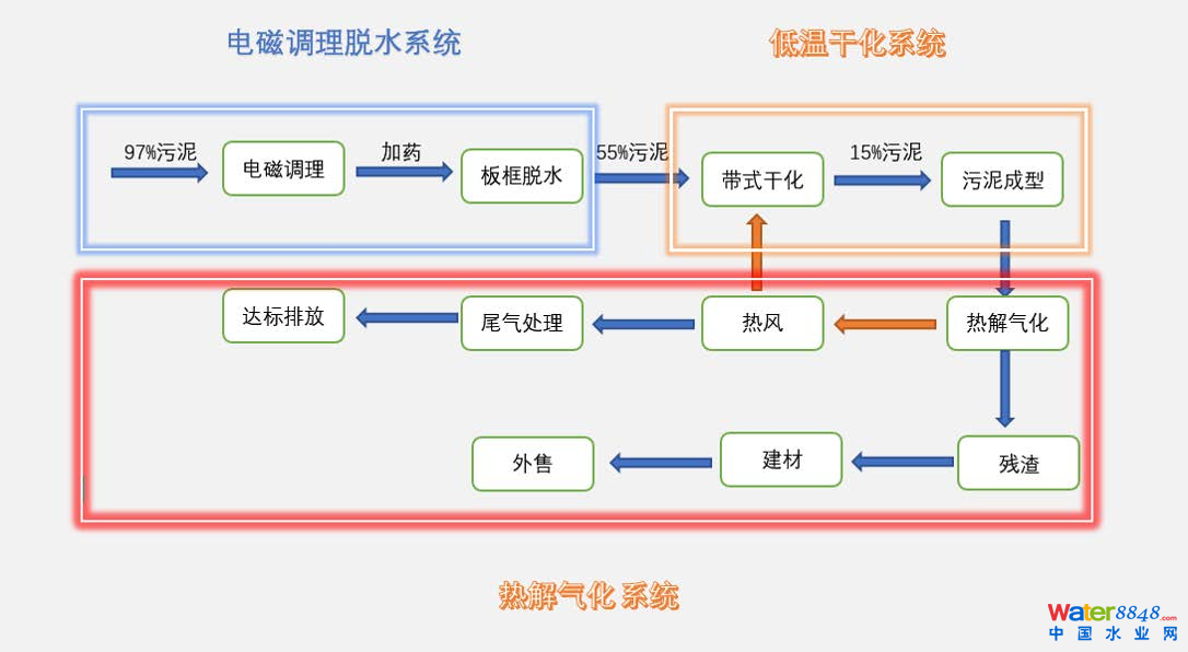 污泥全流程處理包含“污泥電破壁”和“熱解氣化”兩個核心技術。