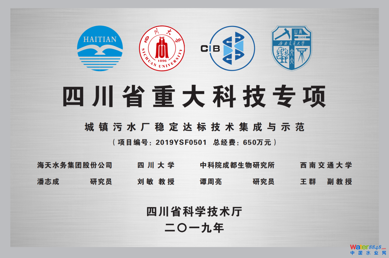 全國首例!海天集團牽頭四川省重大科技專項成功實施市政污水處理廠污泥旋流分選碳源回收技術應用