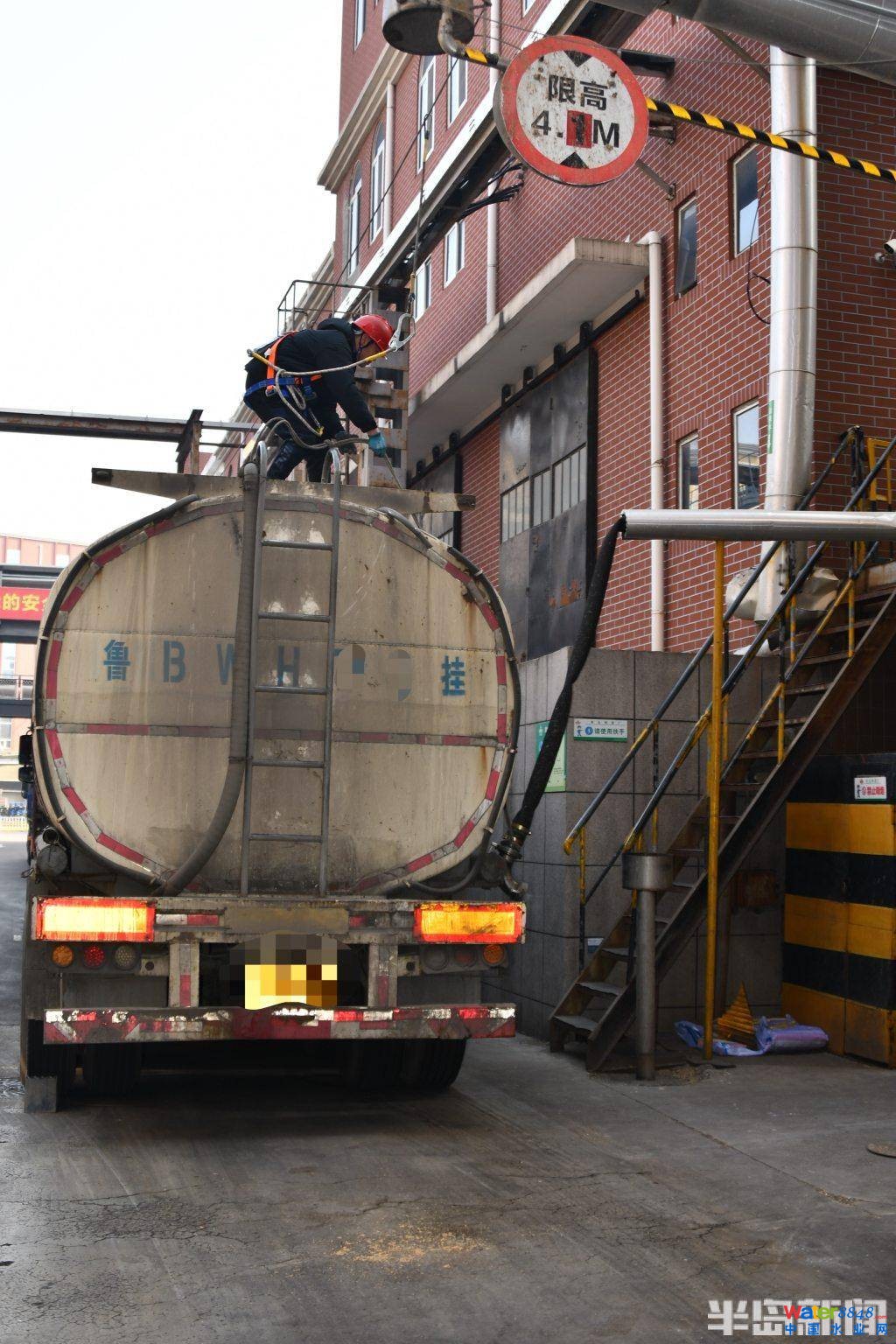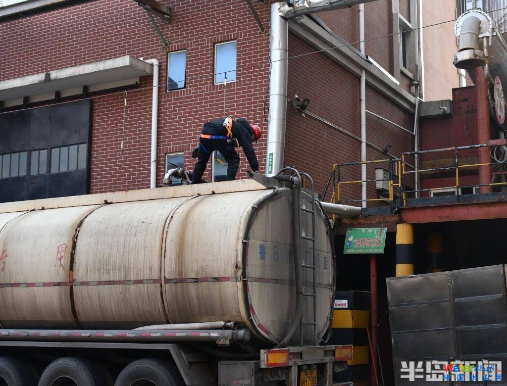 11點半,記者正在廠里探訪時,拉熱凝固物的罐車如約而至,司機將罐車與熱凝固物存儲罐通過管道連接起來,,將熱凝固物泵到罐車當中。