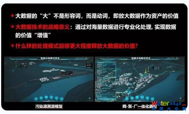 大數(shù)據(jù)之“大”,關(guān)鍵是思維模式的“大”、研究范式的“大”和應(yīng)用融通的“大”。大數(shù)據(jù)的大,充分體現(xiàn)了融合之道,是思維模式 的“融合”、是方法路徑的融合,更是行業(yè)發(fā)展理念的融合!其實(shí),目前水系統(tǒng)的數(shù)據(jù)還遠(yuǎn)未達(dá)到“大數(shù)據(jù)”的程度。這是智慧水務(wù)平臺建設(shè)的一個(gè)痛點(diǎn),但也正是我們的努力方向所在。我們堅(jiān)信,大數(shù)據(jù)開啟了一個(gè)重大的時(shí)代轉(zhuǎn)型!未來社會的競爭,一定是對大數(shù)據(jù)的競爭!未來社會的繁榮,一定是因大數(shù)據(jù)所撬動的數(shù)字經(jīng)濟(jì)和生態(tài)文明而繁榮!
