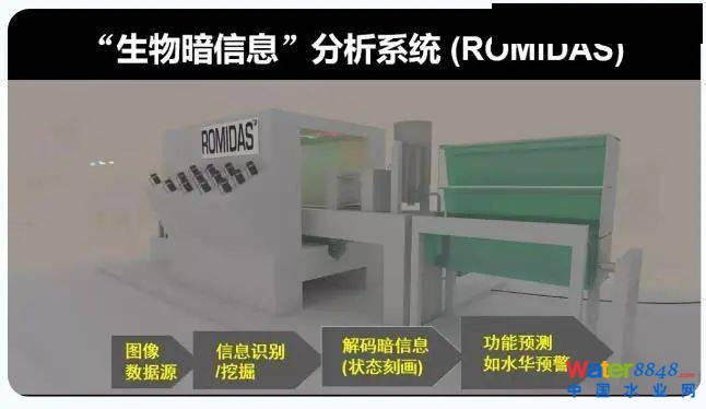王愛杰團(tuán)隊(duì)開發(fā)了生物暗信息挖掘ROMIDAS系統(tǒng)。微型生物對于維持水系統(tǒng)結(jié)構(gòu)和功能穩(wěn)定性起著至關(guān)重要的作用,僅細(xì)菌和古細(xì)菌的細(xì)胞數(shù)量就高達(dá)1.2 × 1030個(gè),可以繞地球3圈。然而,人類對水系統(tǒng)生物信息的認(rèn)知嚴(yán)重缺失。2019年發(fā)表在Nature Microbiology的文章表明,全球污水廠活性污泥微生物組細(xì)菌約10億種,而我們能確定功能的還不足0.05%,其余信息仍為暗信息。ROMIDAS是一種新型傳感系統(tǒng),連續(xù)流經(jīng)微流控室的活性污泥,相當(dāng)于被標(biāo)記了時(shí)間軸的連續(xù)樣本,可以原位無損地采集可量化的圖像數(shù)據(jù)。圖像數(shù)據(jù)、結(jié)構(gòu)化數(shù)據(jù)等單一維度信息,通過多源異構(gòu)數(shù)據(jù)融合,可獲得難以實(shí)時(shí)測量的“暗信息”,建立新的可量化指標(biāo),如污泥膨脹指數(shù)與水體富營養(yǎng)化指數(shù)等,并納入水系統(tǒng)狀態(tài)評估體系,從而將看不見的“暗信息”呈現(xiàn)為大數(shù)據(jù)源。