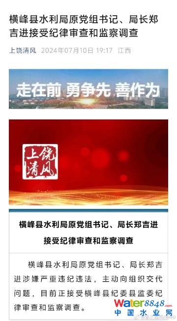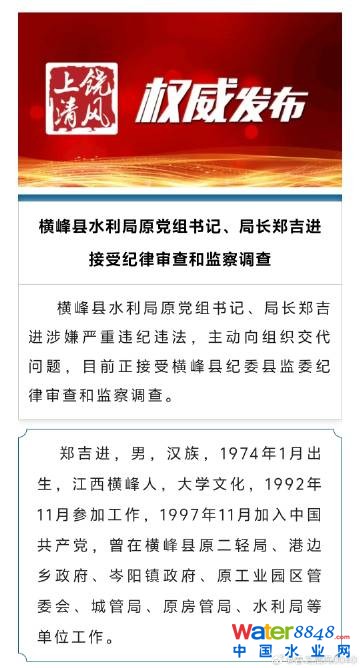 【江西省橫峰縣水利局原黨組書記、局長鄭吉進接受紀律審查和監(jiān)察調查】