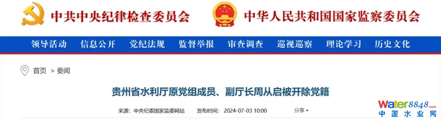 貴州省水利廳原黨組成員、副廳長周從啟被開除黨籍