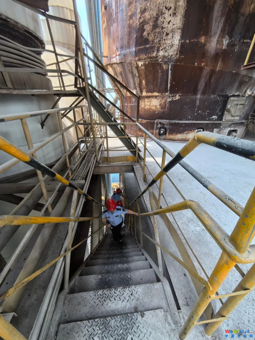 “高溫、高熱、噪聲”的提醒字眼在水泥廠車間內(nèi)隨處可見。在通往作業(yè)平臺上,爐窯散發(fā)的熱氣混合著本就灼熱的陽光,一段不到20米的道路如同熱鍋一般,王雪彬和隊員迅速通過,順著樓梯爬上了作業(yè)平臺。