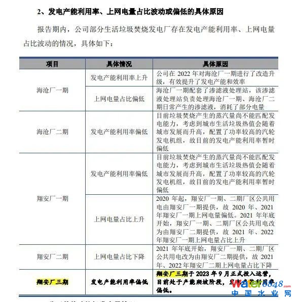 廈門環(huán)能在2024年6月下旬披露的審核問詢函回復(fù)內(nèi)介紹,翔安廠三期于2023年9月正式投入運(yùn)營,目前處于產(chǎn)能爬坡階段,發(fā)電產(chǎn)能利用率偏低。