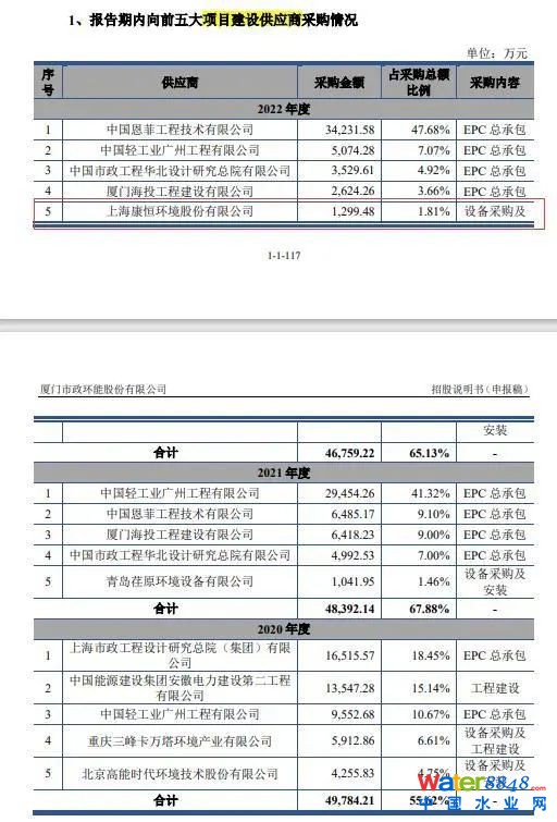 此外,廈門環(huán)能存在與控股股東下屬公司、第三大股東從事相似業(yè)務(wù)的情形,第三大股東于2022年8月入股,并于當(dāng)年成為公司前五大項(xiàng)目建設(shè)供應(yīng)商。