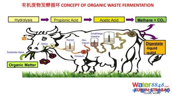 “有機(jī)廢物發(fā)酵循環(huán)就像牛的消化循環(huán),把草吃進(jìn)去水解,通過(guò)牛的幾個(gè)胃和大小腸來(lái)消化處理,相當(dāng)于生物的幾級(jí)處理器,最后出來(lái)就是沼氣和二氧化碳,以及液態(tài)和固體的沼渣沼液。整個(gè)過(guò)程是仿生牛在生態(tài)鏈起的作用。”彭濤介紹道。