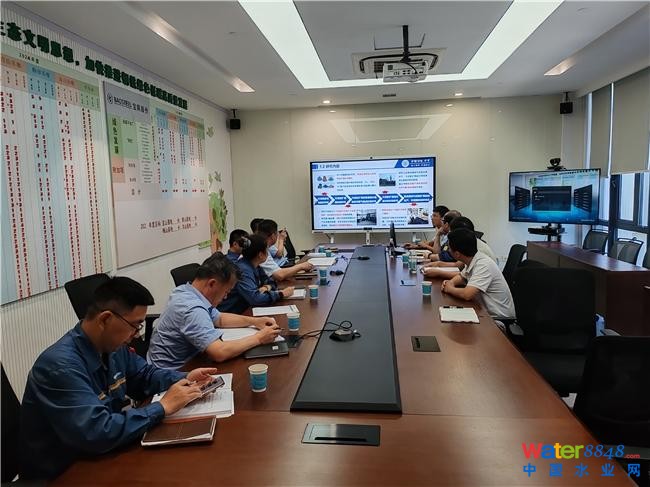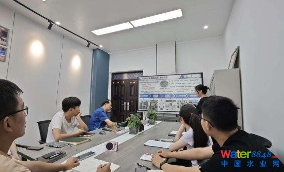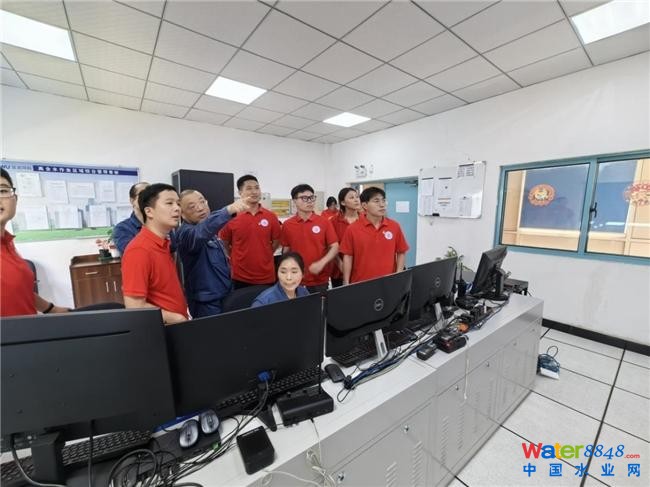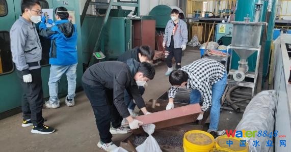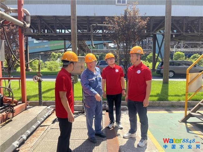 圖為團(tuán)隊成員在污泥固廢處理中心與技術(shù)人員開展交流,了解生產(chǎn)流程