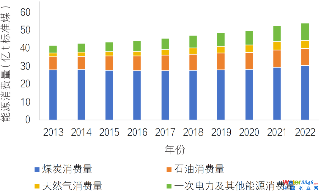 2022年全國用水量5998.2億m³,農業(yè)用水量為3781.3億m³,占用水總量的63.0%,大量的農業(yè)用水擠占了其他行業(yè)的用水份額,工業(yè)用水量僅為968.4億m³,不足農業(yè)用水量的1/3;生活用水量為905.7億m³,僅占總用水量的15.1%;而生態(tài)用水作為綠色可持續(xù)發(fā)展的重要基礎,僅為342.8億m³,約為農業(yè)用水量的1/12、總用水量的5.7%,遠低于我國生態(tài)需水量要求。用水結構不合理,第一產業(yè)用水量高,一方面導致大量水資源浪費,另一方面使得我國水資源轉化為國內生產總值的效率較低。隨著自然資源大量開采和氣候條件不斷惡化,未來發(fā)展不僅要關注經(jīng)濟的增長,更要著眼于人與自然和諧共生。2024年印發(fā)的《中共中央 國務院關于加快經(jīng)濟社會發(fā)展全面綠色轉型的意見》中提出,要加快經(jīng)濟社會發(fā)展全面綠色轉型,形成節(jié)約資源和保護環(huán)境的空間格局、產業(yè)結構、生產方式、生活方式,這要求我國未來用水結構需向“高效低耗,生態(tài)友好”方向轉變,推進水資源、糧食、能源一體化、全鏈條節(jié)約和全過程管理。
