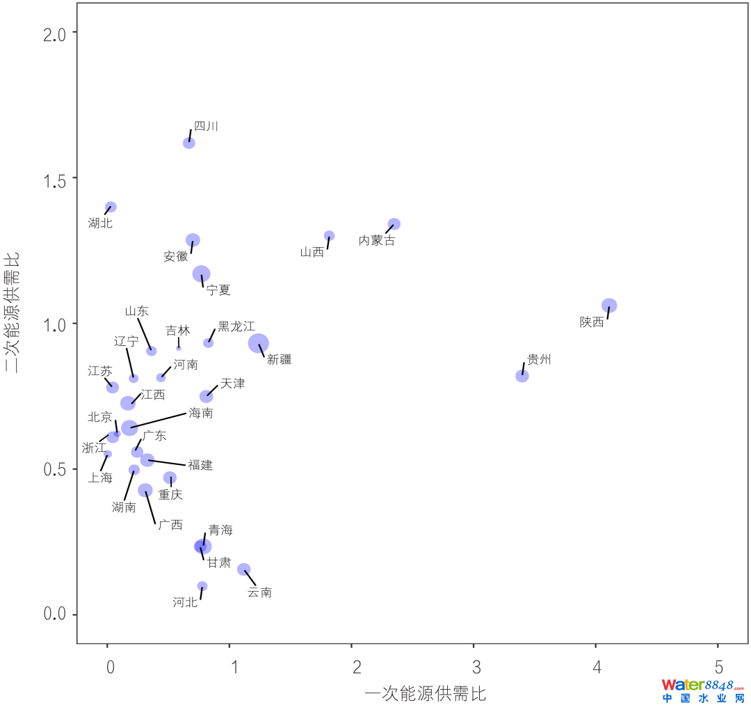 ▲30個統(tǒng)計省份水資源稟賦與供需關系(圓形大小代表2022年人均水資源量多少)