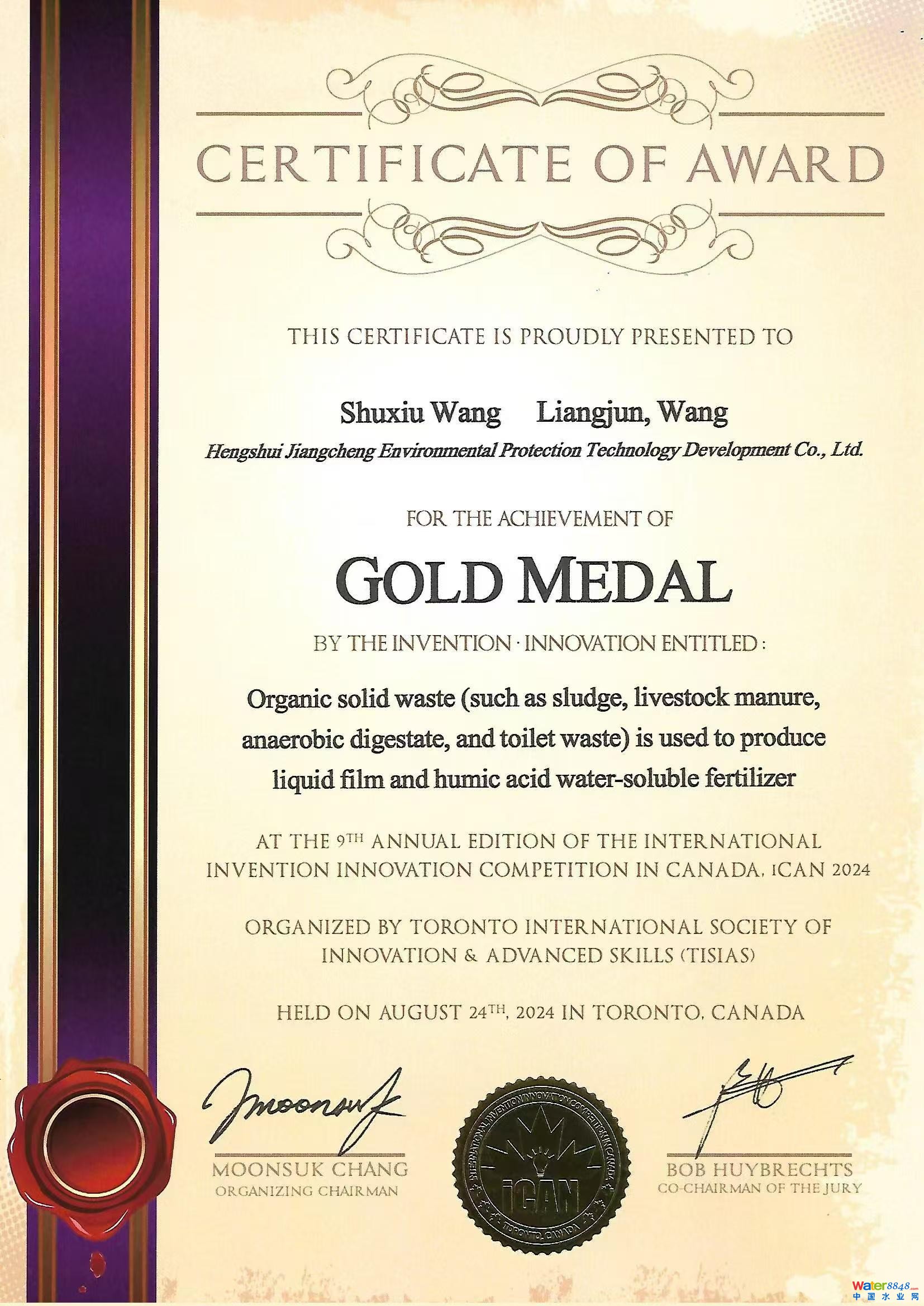 日前,“2024第九屆加拿大國際發(fā)明創(chuàng)新競賽”公示評審結(jié)果揭曉,由衡水市環(huán)保局原局長、高級工程師王書秀等人研究創(chuàng)新的“有機(jī)固廢(污泥、畜禽糞便、沼渣、改廁糞污)生產(chǎn)液態(tài)地膜和腐植酸水溶肥”技術(shù)榮獲大賽金獎。