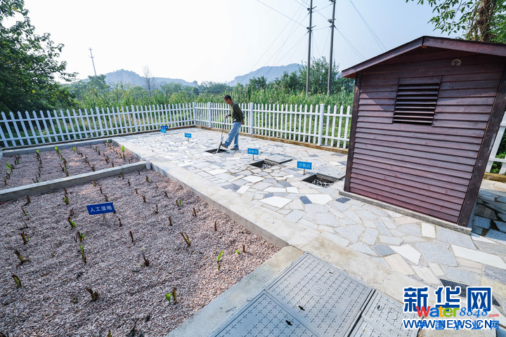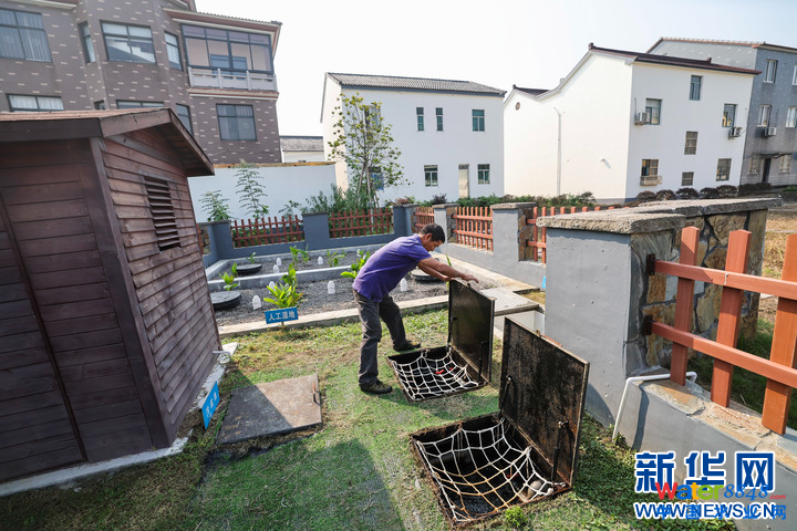 10月11日,工作人員在道場(chǎng)鄉(xiāng)道場(chǎng)浜村查看剛剛投入使用的道場(chǎng)鄉(xiāng)道場(chǎng)浜村生活污水處理終端。近期,浙江省湖州市道場(chǎng)鄉(xiāng)道場(chǎng)浜村的“花園式”農(nóng)村生活污水處理終端民生實(shí)事工程——生活污水處理設(shè)備“南浜9號(hào)終端”正式投入使用,經(jīng)過科學(xué)改造提升后的污水處理終端日處理量達(dá)20噸,處理后的水質(zhì)達(dá)到了國(guó)標(biāo)二級(jí)排放標(biāo)準(zhǔn),使25戶居民受益;同時(shí)“南浜9號(hào)終端”還安裝6個(gè)噴灑,用于村民灌溉花草苗木。新華社記者 徐昱 攝