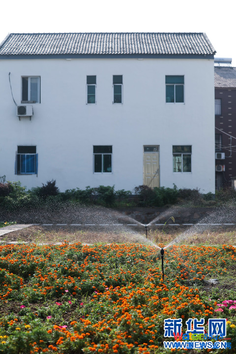 10月11日,道場(chǎng)鄉(xiāng)道場(chǎng)浜村生活污水處理終端處理后的水用于澆灌村里的花草。新華社記者 徐昱 攝