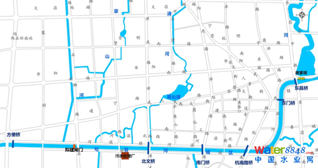圖 1某河水環(huán)境整治區(qū)段(東昌橋-擬建閘)