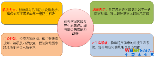 項(xiàng)目目標(biāo)的實(shí)現(xiàn)體現(xiàn)在城市防洪、內(nèi)澇、污染控制和生態(tài)景觀子目標(biāo)的實(shí)現(xiàn)和相互的融合。