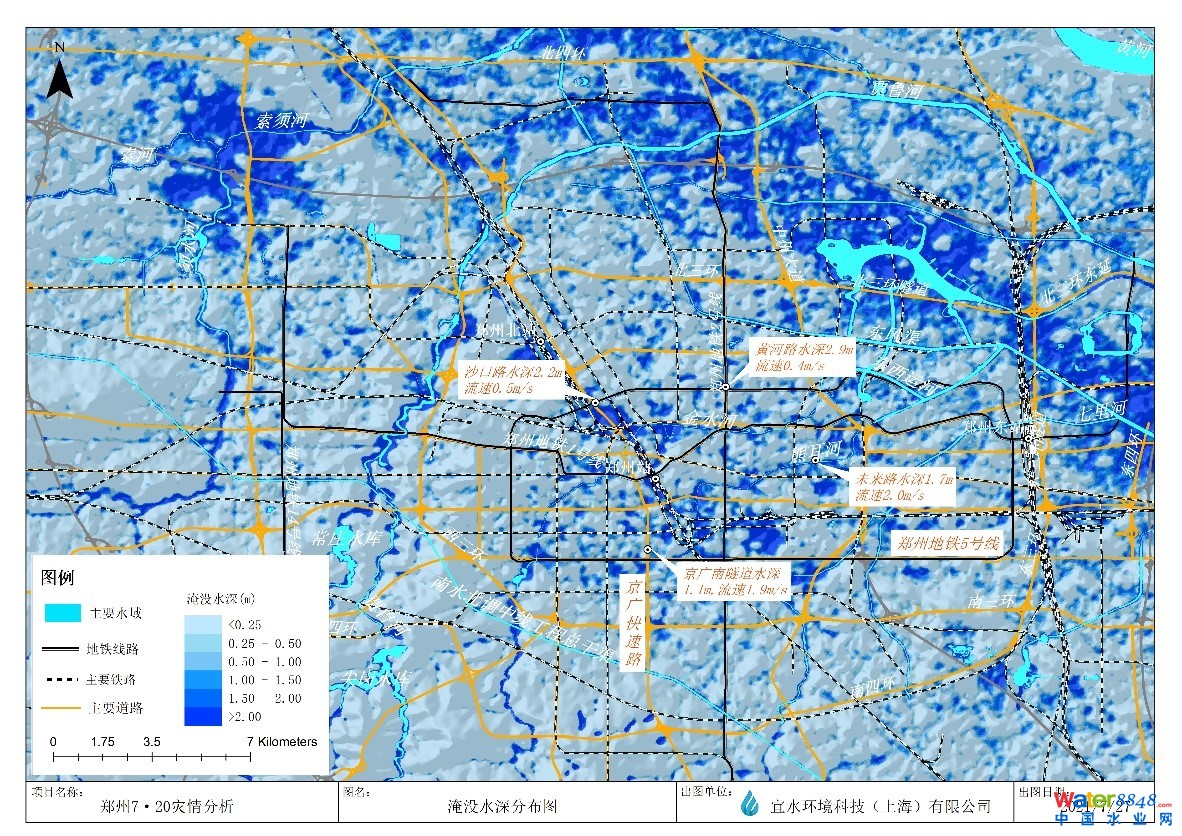圖 8 鄭州市主城區(qū)洪澇淹沒(méi)分布圖