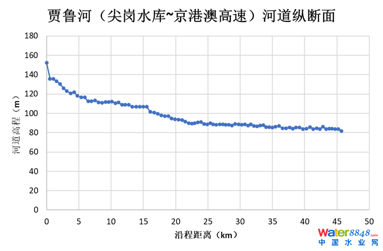圖 2 賈魯河(尖崗水庫(kù)-京港澳高速)河道縱斷面沿線(xiàn)高程(m)