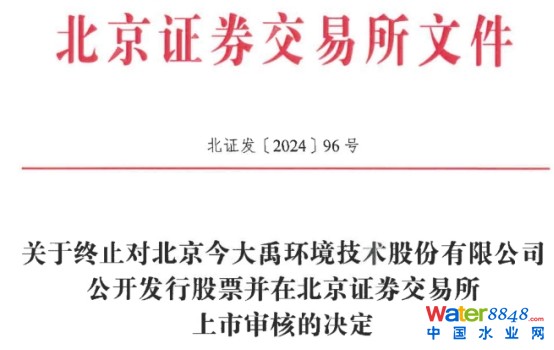 北交所網(wǎng)站近日披露關(guān)于終止對北京今大禹環(huán)境技術(shù)股份有限公司(簡稱“今大禹”)公開發(fā)行股票并在北京證券交易所上市審核的決定。