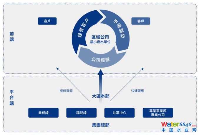 2021年,其啟動(dòng)了總部中心及區(qū)域改革,構(gòu)建了更貼近市場(chǎng)和客戶(hù)的區(qū)域組織,形成「集團(tuán)-大區(qū)-區(qū)域公司」三層架構(gòu)。其組織架構(gòu)是:職能制+有限公司制+事業(yè)部制的綜合型組織架構(gòu)。