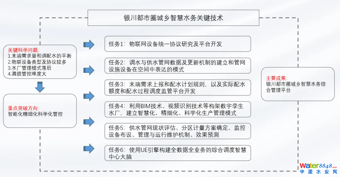 銀川都市圈城鄉(xiāng)東線供水工程是國家級重點工程項目,目的是解決區(qū)域地表水資源短缺的問題,完成地表水替代地下水的長期可持續(xù)源水保障。2022年,吳忠水務(wù)啟動該工程的智慧化建設(shè),數(shù)智科技公司作為承建單位,為吳忠水務(wù)搭建了“銀川都市圈城鄉(xiāng)智慧水務(wù)綜合管理平臺”。