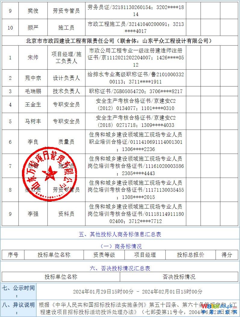 北京市市政四建設(shè)工程有限責(zé)任公司(聯(lián)合體:山東平眾工程設(shè)計(jì)有限公司)